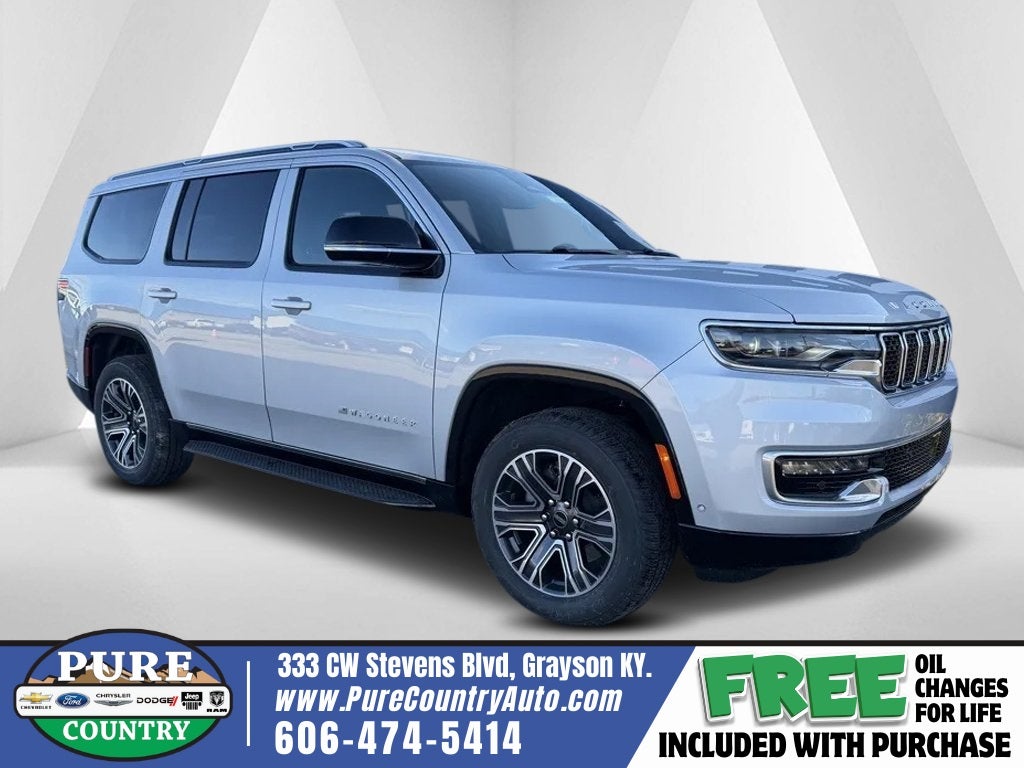 This Jeep Wagoneer has many features and is well equipped including, 10 Speakers, 3 Panel Sunroof, 3.55 Rear Axle Ratio, 3rd row seats: bench, 4-Wheel Disc Brakes, ABS brakes, Adjustable Roof Rail Crossbars, Air Conditioning, Alloy wheels, AM/FM radio: SiriusXM with 360L, Anti-whiplash front head restraints, Apple CarPlay/Android Auto, Audio memory, Auto Adjust In Reverse Exterior Mirrors, Auto-dimming door mirrors, Auto-Dimming Exterior Driver Mirror, Auto-dimming Rear-View mirror, Auto-leveling suspension, Automatic temperature control, Brake assist, Bumpers: body-color, Cargo Cover, Compass, Delay-off headlights, Driver door bin, Driver vanity mirror, Driver's Seat Mounted Armrest, Dual front impact airbags, Dual front side impact airbags, Electronic Stability Control, Emergency communication system: Jeep Connect, Exterior Mirrors Approach Lamps, Exterior Mirrors w/Memory, Exterior Mirrors w/Supplemental Signals, Four wheel independent suspension, Front anti-roll bar, Front Bucket Seats, Front Center Armrest w/Storage, Front dual zone A/C, Front fog lights, Front reading lights, Fully automatic headlights, Garage door transmitter, Heated door mirrors, Heated Exterior Mirrors, Heated front seats, Heated steering wheel, Illuminated entry, Knee airbag, Leather Trimmed Bucket Seats, Low tire pressure warning, Memory seat, Navigation System, Normal Duty Suspension, Occupant sensing airbag, Outside temperature display, Overhead airbag, Overhead console, Panic alarm, ParkView Rear Back-Up Camera, Passenger door bin, Passenger seat mounted armrest, Passenger vanity mirror, Power adjustable front head restraints, Power door mirrors, Power driver seat, Power Liftgate, Power passenger seat, Power steering, Power windows, Premium Group I, Quick Order Package 25E, Radio data system, Radio: Uconnect 5 Nav w/10.1 Display, Rear air conditioning, Rear anti-roll bar, Rear dual zone A/C, Rear reading lights, Rear seat center armrest, Rear window defroster, Rear window wiper, Reclining 3rd row seat, Remote keyless entry, Reversible Carpet/Vinyl Cargo Mat, Security system, Speed control, Speed-sensing steering, Speed-Sensitive Wipers, Split folding rear seat, Steering wheel memory, Steering wheel mounted audio controls, Tachometer, Telescoping steering wheel, Tilt steering wheel, Traction control, Trip computer, Turn signal indicator mirrors, Variably intermittent wipers, Ventilated front seats, Voltmeter, Wheels: 20 x 9.0 Premium 2 Aluminum. Thank you for taking the time to look at this superb 2025 Jeep Wagoneer. For that unequaled Pure Country buying experience, stop in to see our inventory of vehicles, shop online at www.purecountryauto.com, or call us today at (606) 474-5414 for more information. Price excludes tax, title, registration, $699 document fee and dealer added accessories. While we make every effort to ensure the data listed here is correct, there may be instances where some of the factory rebates, incentives, options or vehicle features may be listed incorrectly as we get data from multiple data sources. PLEASE MAKE SURE to confirm the details of this vehicle with dealer.
