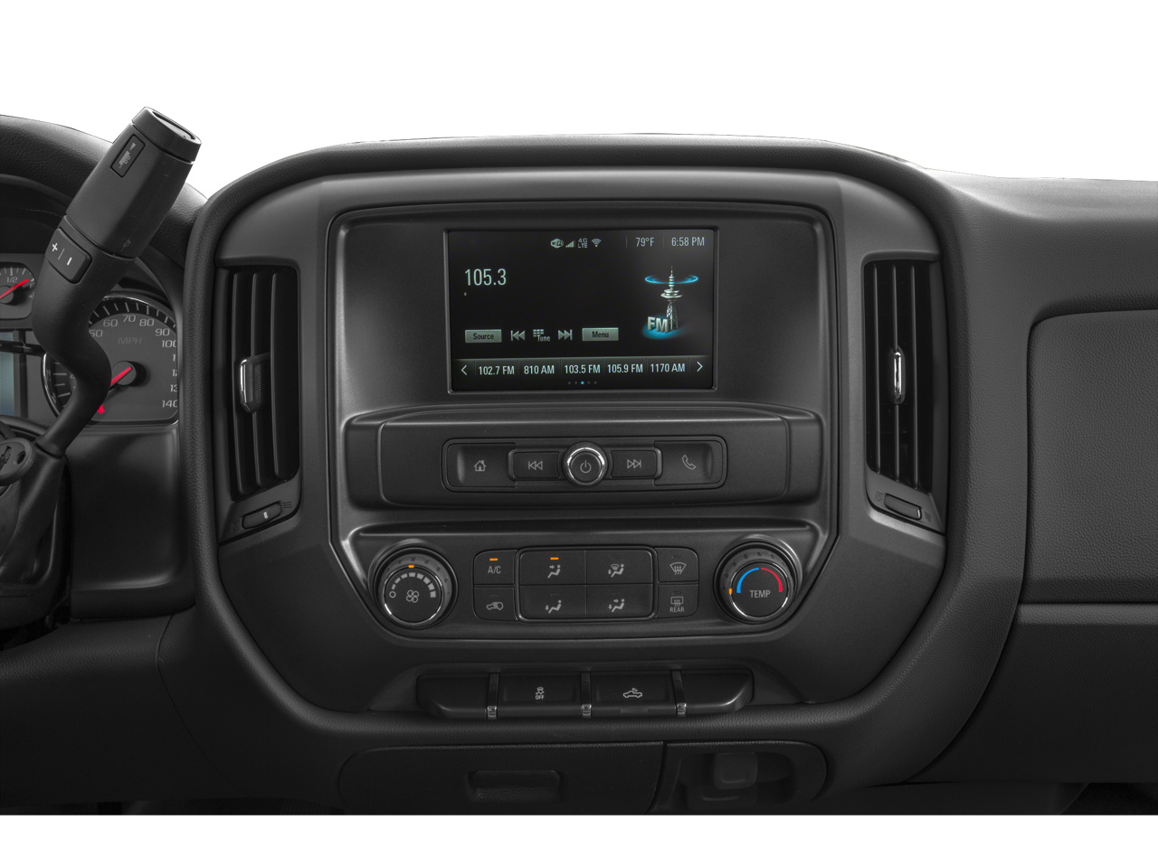 - Audio system, Chevrolet Infotainment System with 8" diagonal color touch-screen, AM/FM stereo with seek-and-scan and digital clock, includes Bluetooth® streaming audio for music and select phones; USB ports; auxiliary jack; voice-activated technology for radio and phone; and Shop with the ability to browse, select and install apps to your vehicle. Apps include Pandora, iHeartRadio, The Weather Channel and more. (Upgradeable to (IO6) 8" Diagonal Color Touch Navigation with Chevrolet Infotainment.)