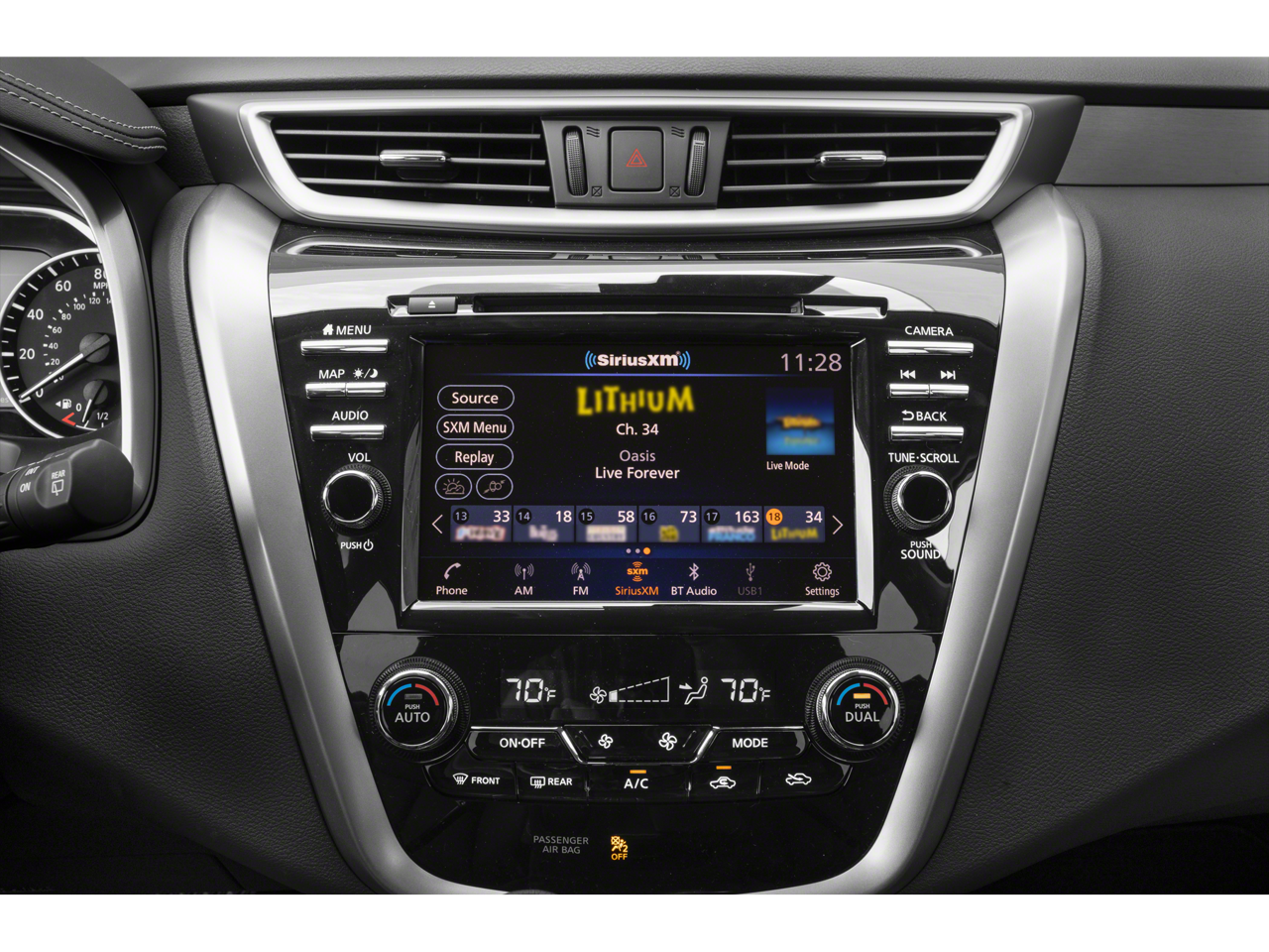 - Radio: AM/FM/CD/MP3/WMA Audio System -inc: Bose premium audio system w/11 speakers plus dual driver subwoofer, NissanConnect w/navigation featuring Apple CarPlay and Android Auto, Nissan door to door navigation w/3D building graphics and satellite imagery, connected navigation features including online POI search, door-to-door and online premium traffic information, SiriusXM Travel Link (weather, fuel prices, movie listings, stock info, sports and parking), SiriusXM Traffic, auxiliary audio input jack, SiriusXM satellite radio, A-IVI 8" display, 2 front illuminated USB connection ports (1 type-A, 1 type-C) for iPod interface and other compatible devices, Bluetooth hands-free phone system, streaming audio via Bluetooth, hands-free text-messaging assistant, Siri Eyes Free and 2 rear illuminated USB charge ports (1 type-A, 1 type-C)